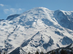 Yesterday was one of the most beautiful days of summer here and we decided to make a trip to Sunrise, Mount Rainier to get a close view of the peak. We walked on snow on a nearby hill (Wonderland trail, I believe) and enjoyed full view of the mountain. Hope this picture will bring some needed chill for east- coasters.