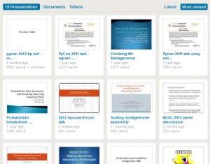 Big Collection of (bio)Informative Slides from C. Titus Brown If you know of other relevant slides, please let us know in the comment section. ‹»Minia Assembler and French Revolution« »Perfect Hash Algorithm of Meraculous Assembler«›