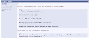 The purpose of writing these commentaries has been to help out other bioinformaticians, who are possibly in the same boat as us. For example, it took us over two days to figure out all the ‘Algorithm’ blocks in the Fermi paper. If our writing helps you save even a day, that is great for open science. In general, the efforts have been appreciated by open science enthusiast like Titus Brown, who mentioned our blog at the top of the list in their recent MSU course on next-gen algorithms. Yeah right !!