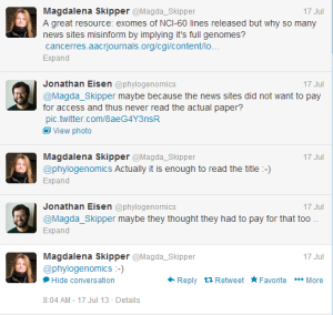Jonathan Eisen never forgets to point out the inconvenience caused by closed- access journals, as you can see from his exchange with a Nature editor.