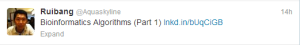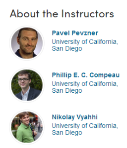 We continue to be amazed at what Pavel Pevzner is up to. The man clearly has the right vision on using internet-based methods to teach bioinformatics and is executing on it superbly. Ruibang forwarded this link in twitter, which covers his bioinformatics course at Coursera.