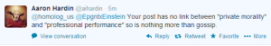 Private morality can tell us something about the person’s character, and how it could affect their professional performance. If, in his private life, a public figure is found to have lied in a serious way, the public should be made aware that he could be lying in his work, too. Where public figures are responsible for setting a moral tone in society, any private immorality should be exposed as hypocrisy. For example, society should be aware that a leading campaigner against child abuse regularly beats his own children.