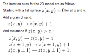 The best way to understand the model is to close all papers and books, and try the toy model yourself. Forget everything about sand, etc. You are essentially simulating a mathematical equation in cellular automata (i.e. digital) form.