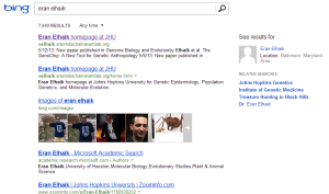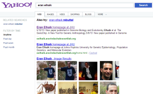 Here is what you find when you search ‘eran elhaik’ in Google, Yahoo and Bing.