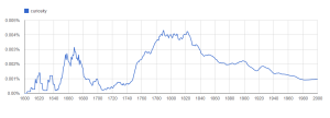 That got us curious about what happened since then, and the results are quite astounding. In the following charts, we present google ngrams trends for the words ‘curious’ and ‘curiosity’ since 16th century.