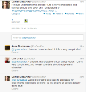 The blog post Daniel Macarthur referred to in above tweet can be accessed here. Kenneth M. Weiss is a professor of biology at Penn State University. In the above twitter battle, older people are deferential to him because of his contribution to science, and younger people are upset about his complaining. We decided to do neither, and chose to read his papers.
