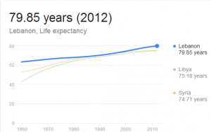 To understand that the Gaza strip number is not a measurement error, we can also check Lebanon, a country neighboring Israel and Palestine. The life expectancy at birth there is higher than USA.