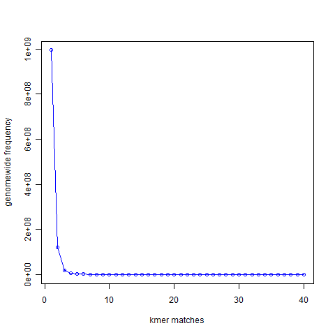How does the measure work? In the first figure of this commentary, we presented the k-mer (k=21) distribution of a genome and showed that most 21-mers are present only once in the genome, a small number of 21-mers are present twice, and so on.