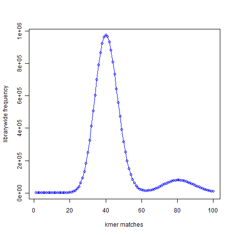 Similarly, a version of the first figure is possible to construct from the de Bruijn graph-based assembly of the NGS library. From the assembly, it is possible to compute observed k-mer distribution of the corresponding k-mers.