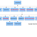 In our blog, we posted many commentaries on building and resolving de Bruijn graphs and readers can understand the first three stages by going through them. The scaffold stage is novel (and quite elaborate) for SOAPdenovo. It will take us some time to go through the algorithm, but curious readers may find the following diagram helpful. It explains Links2Scaf function. Functions in red have many sub-functions not shown in the chart, whereas functions in black have few sub-functions.