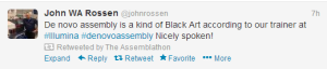 We are puzzled to read the above comment. Over the last few months, we exchanged emails with a number of authors of various NGS genome assembly programs and none appeared like a black artist. Our only suspicion is that Jared Simpson, the author of two major assembly programs, is a sophisticated computer program, because no matter at what hour we ask him an assembly- related question, we get a detailed answer within few seconds. Even Google algorithm is not that fast !!