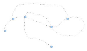 The first few assembly steps have become nearly the same for almost all de Bruijn graph-based assemblers. They all split the reads into k-mers, combine k-mers into de Bruijn graph and resolve the graph into contigs. At first the graph looks like following figure, where each dotted line is made of many k-mers.