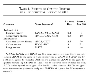 The ‘Table 1’ from the paper (Johnny’s report from genetic test) is shown below -