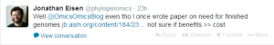 For an example of change of heart based on evidence, read the following recent comment by Jonathan Eisen, who previously argued in favor of getting a complete genome in 2002 - (The Value of Complete Microbial Genome Sequencing (You Get What You Pay For) - Claire M. Fraser, Jonathan A. Eisen, Karen E. Nelson, Ian T. Paulsen, and Steven L. Salzberg).