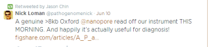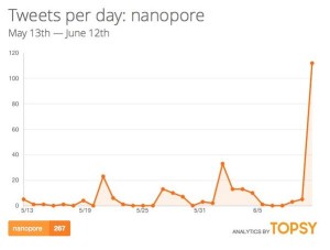 One ‘genuine’ 8kb Oxford Nanopore read showed up, creating big buzz over twitter chat channels -