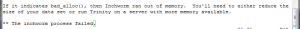 It is actually not what you are thinking. We were initially fooled by the message and thought the program ran out of RAM. Actually the program crashed, because Trinity shell commands use absolute paths instead of relative paths during its operation. While Trinity was at its 15th hour of running Meryl, we happened to move the topmost folder to make sure the large files do not crowd out backup system. That little effort to speed up the execution delayed it by hours. When Meryl completed, Inchworm started and immediately crashed, because it could not find any file.