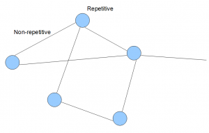 In the above image, each line and circle is an aggregation of many k-mers. Typically, k-mers from non-repetitive regions of a genome join to form lines as shown in the above image. K-mers from repetitive regions are not easy to simplify, and are shown as circles as blobs of many such k-mers.