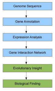 The process of going from sequencing to new discoveries can be broadly summarized in the following steps.