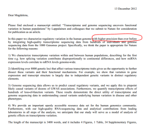 The cover letter for GTEx claims that they characterize variations with ‘higher precision than ever before’. How correct is that? Also, why is ‘higher precision than ever before’ important, but not accuracy?
