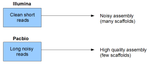 You can see that even though short reads are clean themselves, the read size itself is a form of noise or loss of information. That loss of information manifests itself into the assembly quality of the genome.