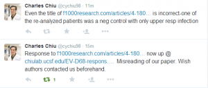 2. Charles Chiu, the senior author of UCSF paper, posted a response on his website signed by three authors (incl. him). I am quoting it here, but please feel free to discuss at the F1000 site.